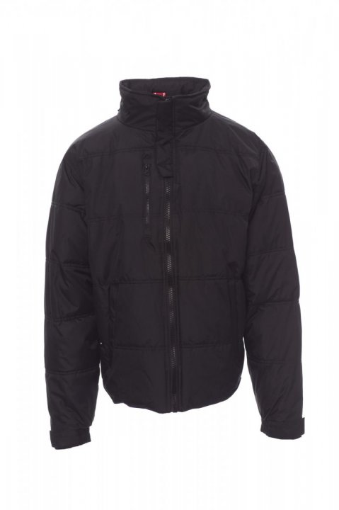 Kurtka męska, 8 mm plastikowy zamek błyskawiczny z metalowym suwakiem, składany kaptur, regulowane mankiety, dwie kieszenie boczne zapinane na zamek błyskawiczny, jedna kieszeń na piersi. Ocieplana od wewnątrz z kontrastującym mikropolarem
