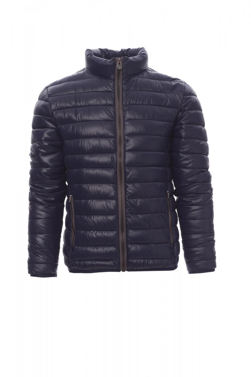Męska kurtka puchowa z wyściółką z wolnych włókien (160g/m²), zapinana na zamek błyskawiczny 8 mm z tworzywa sztucznego z metalowym suwakiem. Mankiety i talia z wąską lamówką. Dwie zewnętrzne kieszenie zapinane na zamek błyskawiczny. Trzy kieszenie wewnętrzne.