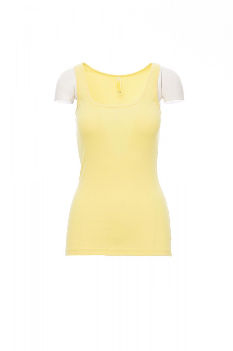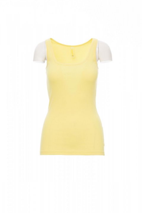Top damski dopasowany na ramiączkach, z głębokim dekoltem, wykończenie dekoltu i rękawów 1 cm.