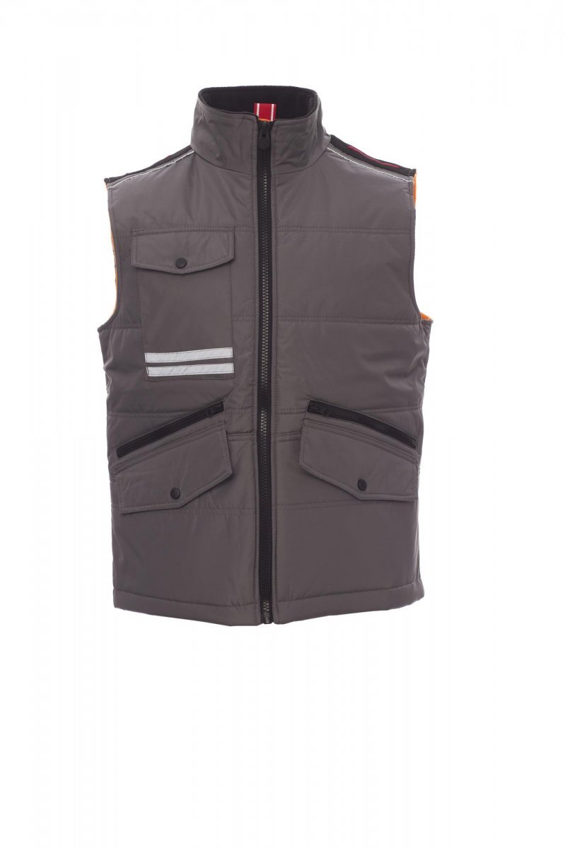 Kamizelka unisex, 8 mm plastikowy zamek błyskawiczny z metalowym suwakiem z patką i plastikowymi guzikami, wyprofilowane plecy, dwie kieszenie zewnętrzne z zapięciem LOCK SYSTEM i dwie kieszenie z zamkiem błyskawicznym, kieszenie skośne zapewniające łatwiejsze wkładanie dłoni, jedna kieszonka na klatce piersiowej na smartfon z pierścieniowym uchwytem na identyfikator, paski odblaskowe na kieszeni i na plecach