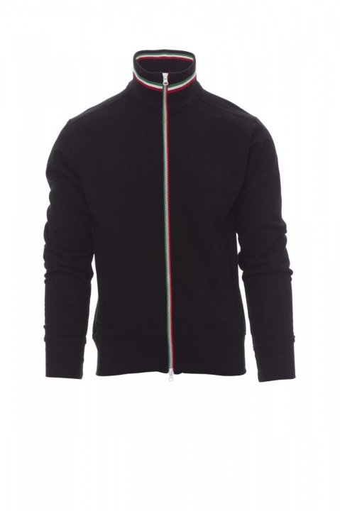 Bluza męska rozpinana z plastikowym zamkiem błyskawicznym SBS w trzech kolorach kontrastujących z podwójnym suwakiem metalowym, kołnierzyk ze ściągaczem i kontrastowym trzykolorowym wykończeniem, dopasowane rękawy, dwie kieszenie zewnętrzne zapinane na zamki błyskawiczne, mankiety i dół ze ściągaczem, wzmocnione szwy.