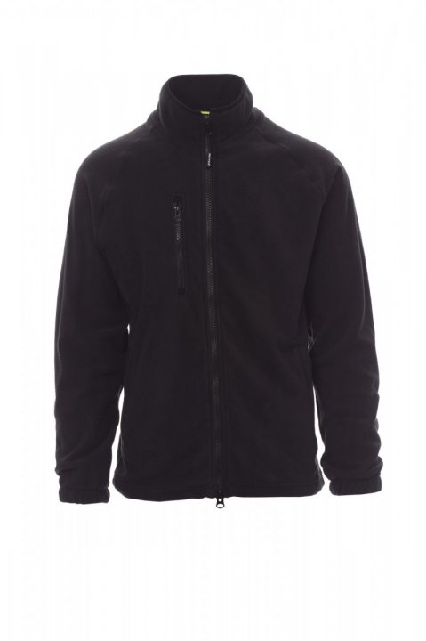Polar męski z czarnym plastikowym zamkiem błyskawicznym 8 mm, rękawy raglanowe, regulowany sznurek w pasie, mankiety elastyczne, dwie kieszenie z ukrytym zamkiem błyskawicznym, jedna kieszeń na zamek błyskawiczny z przodu, dekolt wykończony kontrastową taśmą wzmacniającą, wzmocnione szwy.