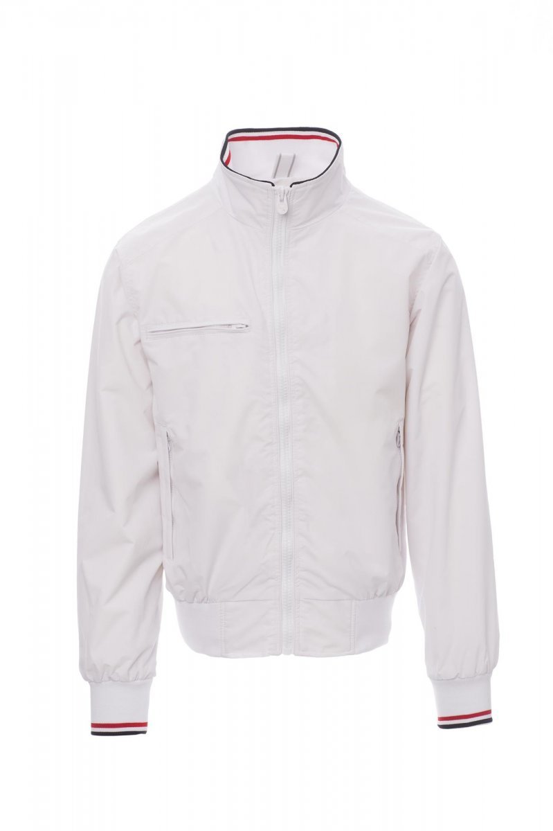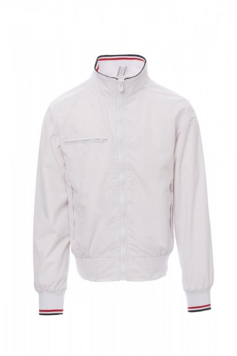 Kurtka męska, zamek błyskawiczny 8 mm, plastikowy z metalowym suwakiem, z kołnierzem, elastycznym ściągaczem na mankietach i w talii, dwie kieszenie zewnętrzne z plastikowym zamkiem błyskawicznym. Od wewnątrz nieocieplona, z podszewką siatkową, kieszonka na smartfon zapinana na zamek błyskawiczny z miejscem na kabel, zamek błyskawiczny na piersi i na plecach ułatwiający tworzenie nadruków i haftów.