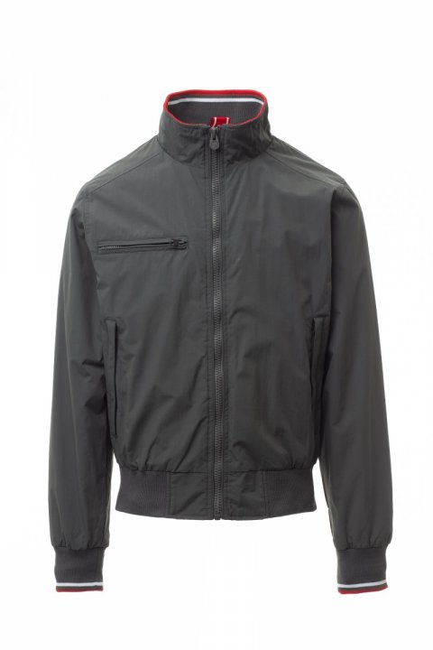 Kurtka męska, zamek błyskawiczny 8 mm, plastikowy z metalowym suwakiem, z kołnierzem, elastycznym ściągaczem na mankietach i w talii, dwie kieszenie zewnętrzne z plastikowym zamkiem błyskawicznym. Od wewnątrz nieocieplona, z podszewką siatkową, kieszonka na smartfon zapinana na zamek błyskawiczny z miejscem na kabel, zamek błyskawiczny na piersi i na plecach ułatwiający tworzenie nadruków i haftów.