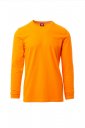 T-shirt z długim rękawem męski, dekolt okrągły, z wykończeniem dekoltu w postaci taśmy 1,5 cm ściągacza z dodatkiem spandeksu, obszycie wierzchnie z przodu, kontrastująca taśma wzmacniająca na całej szerokości barków, widoczna na spodniej części kołnierzyka, szwy elastyczne, szwy na bokach