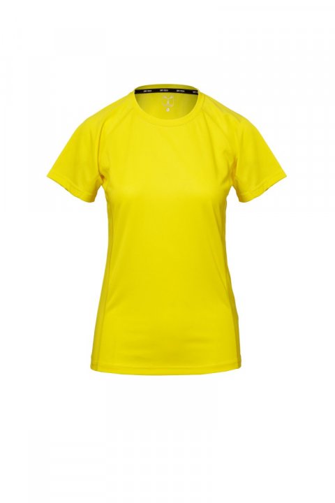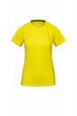 Dopasowany t-shirt damski techniczny/sportowy z rękawami raglanowymi, podwójne szwy boczne zapewniające lepsze dopasowanie, taśma w obszyciu wewnętrznym kołnierzyka.