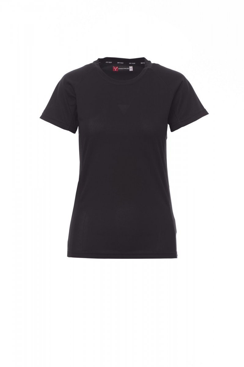 Dopasowany t-shirt damski techniczny/sportowy z rękawami raglanowymi, podwójne szwy boczne zapewniające lepsze dopasowanie, taśma w obszyciu wewnętrznym kołnierzyka.