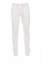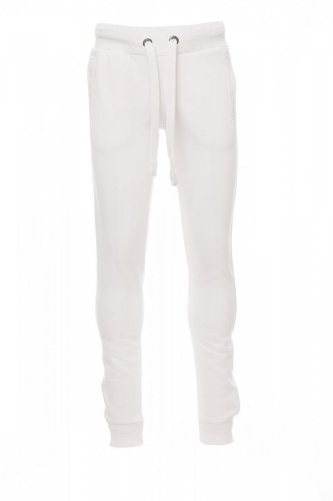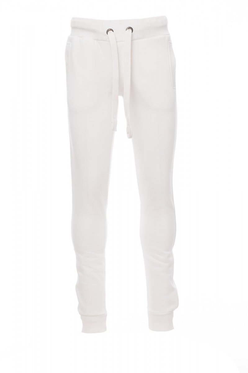 Spodnie dresowe męskie ze ściągaczem w pasie i u dołu nogawek, rozporek na zamek błyskawiczny, sznurek biały z kontrastowymi przeszyciami i kółkami metalowymi, dwie kieszenie z przodu ze ściągaczem, kieszeń z tyłu, zapinana na zamek błyskawiczny, wzmocnione szwy.