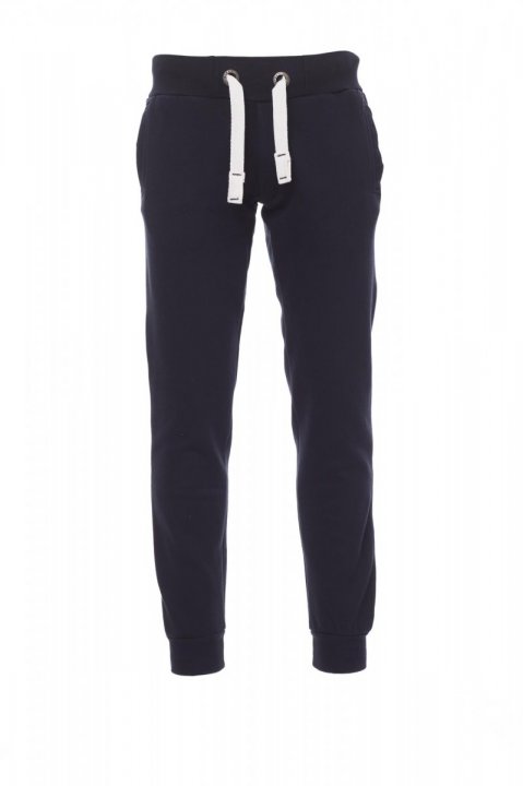 Spodnie dresowe męskie ze ściągaczem w pasie i u dołu nogawek, rozporek na zamek błyskawiczny, sznurek biały z kontrastowymi przeszyciami i kółkami metalowymi, dwie kieszenie z przodu ze ściągaczem, kieszeń z tyłu, zapinana na zamek błyskawiczny, wzmocnione szwy.