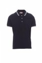 Koszulka polo męska z krótkim rękawem, 3 białe guziki, eleganckie kontrastowe wykończenie kołnierzyka i rękawów, kołnierzyk i krawędź rękawa ze ściągaczem, rozcięcia boczne ze wzmocnionymi szwami, zasłonięte szwy na kołnierzyku, boczna taśma wzmacniająca, szwy elastyczne, taśma w obszyciu wewnętrznym kołnierzyka.