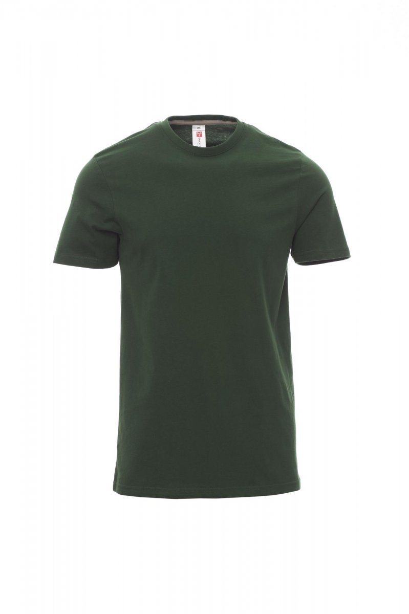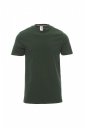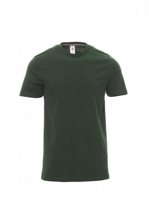 T-shirt z krótkim rękawem męski, dekolt okrągły, z wykończeniem dekoltu w postaci taśmy 1,5 cm ściągacza z dodatkiem spandeksu, obszycie wierzchnie z przodu, kontrastująca taśma wzmacniająca na całej szerokości barków, widoczna na spodniej części kołnierzyka, szwy elastyczne, szwy na bokach