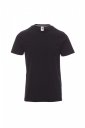 T-shirt z krótkim rękawem męski, dekolt okrągły, z wykończeniem dekoltu w postaci taśmy 1,5 cm ściągacza z dodatkiem spandeksu, obszycie wierzchnie z przodu, kontrastująca taśma wzmacniająca na całej szerokości barków, widoczna na spodniej części kołnierzyka, szwy elastyczne, szwy na bokach