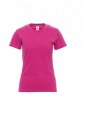 T-shirt z krótkim rękawem damski, dopasowany, dekolt okrągły, z wykończeniem dekoltu w postaci taśmy 1,5 cm ściągacza z dodatkiem spandeksu, obszycie wierzchnie z przodu, kontrastująca taśma wzmacniająca na całej szerokości barków, widoczna na spodniej części kołnierzyka, szwy elastyczne, szwy na bokach