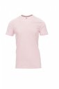 T-shirt z krótkim rękawem męski, dekolt okrągły, z wykończeniem dekoltu w postaci taśmy 1,5 cm ściągacza z dodatkiem spandeksu, obszycie wierzchnie z przodu, kontrastująca taśma wzmacniająca na całej szerokości barków, widoczna na spodniej części kołnierzyka, szwy elastyczne, wzór typu tuba (wersja maskująca ze szwami bocznymi)