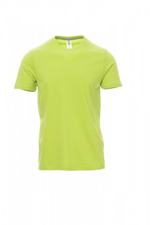 T-shirt z krótkim rękawem męski, dekolt okrągły, z wykończeniem dekoltu w postaci taśmy 1,5 cm ściągacza z dodatkiem spandeksu, obszycie wierzchnie z przodu, kontrastująca taśma wzmacniająca na całej szerokości barków, widoczna na spodniej części kołnierzyka, szwy elastyczne, wzór typu tuba (wersja maskująca ze szwami bocznymi)