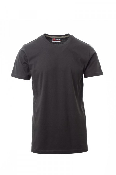 T-shirt z krótkim rękawem męski, dekolt okrągły, z wykończeniem dekoltu w postaci taśmy 1,5 cm ściągacza z dodatkiem spandeksu, obszycie wierzchnie z przodu, kontrastująca taśma wzmacniająca na całej szerokości barków, widoczna na spodniej części kołnierzyka, szwy elastyczne, wzór typu tuba (wersja maskująca ze szwami bocznymi)