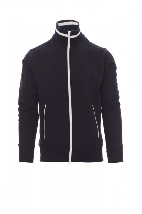 Bluza męska rozpinana z plastikowym zamkiem błyskawicznym SBS w kontrastowym kolorze, z podwójnym metalowym suwakiem. Kołnierz ze ściągaczem z kontrastową lamówką również na bocznych kieszeniach, dopasowane rękawy, dwie zewnętrzne kieszenie na kontrastowy zamek błyskawiczny, elastyczny ściągacz w talii i na mankietach. Wzmocnione szwy.
