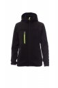 Sweter z dzianiny technicznej z czarnymi wstawkami Soft-shell, dwukolorowy, długi zamek błyskawiczny SBS wykończony taśmą, kaptur z podwójnymi szwami, wąskie wykończenie mankietów i dołu, dwie kieszenie boczne z zamkiem błyskawicznym, jedna kieszeń na klatce piersiowej.