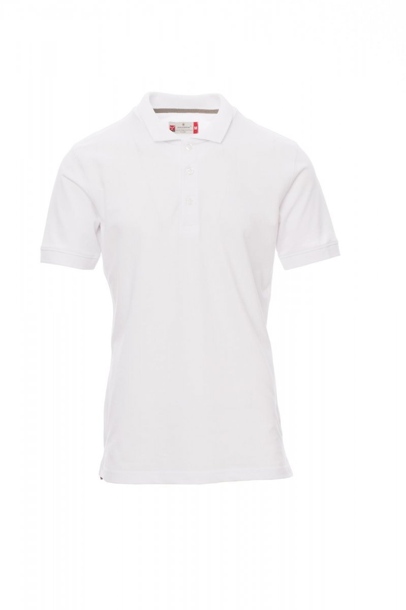 Koszulka polo męska, z krótkim rękawem, z 3 pasującymi guzikami z efektem masy perłowej, kołnierzyk i krawędzie rękawów ze ściągaczem, rozcięcia boczne, zasłonięte szwy kołnierzyka z kontrastową taśmą, szwy elastyczne, boczna taśma wzmacniająca.
