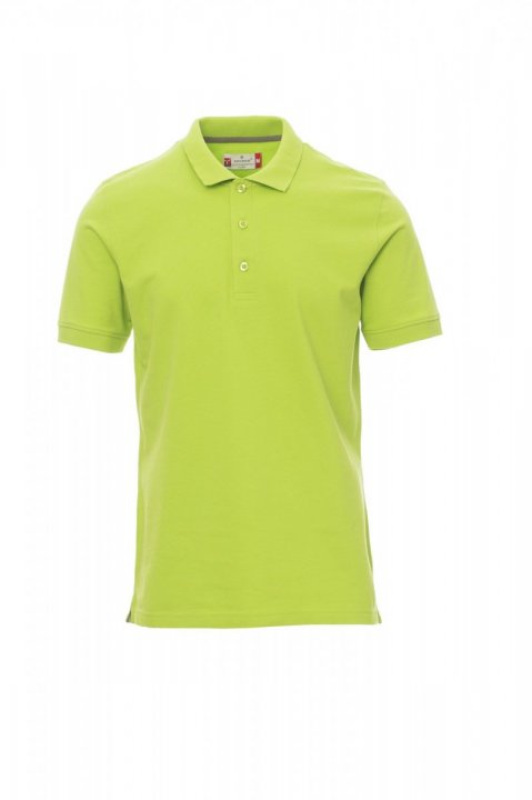 Koszulka polo męska, z krótkim rękawem, z 3 pasującymi guzikami z efektem masy perłowej, kołnierzyk i krawędzie rękawów ze ściągaczem, rozcięcia boczne, zasłonięte szwy kołnierzyka z kontrastową taśmą, szwy elastyczne, boczna taśma wzmacniająca.