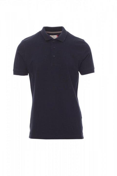 Koszulka polo męska, z krótkim rękawem, z 3 pasującymi guzikami z efektem masy perłowej, kołnierzyk i krawędzie rękawów ze ściągaczem, rozcięcia boczne, zasłonięte szwy kołnierzyka z kontrastową taśmą, szwy elastyczne, boczna taśma wzmacniająca.
