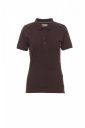 Koszulka polo damska, dopasowana, z krótkim rękawem, z 4 pasującymi guzikami z efektem masy perłowej, kołnierzyk i krawędzie rękawów ze ściągaczem, rozcięcia boczne, zasłonięte szwy kołnierzyka z kontrastową taśmą, szwy elastyczne, boczna taśma wzmacniająca, taśma w obszyciu wewnętrznym kołnierzyka