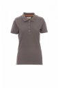 Koszulka polo damska, dopasowana, z krótkim rękawem, z 4 pasującymi guzikami z efektem masy perłowej, kołnierzyk i krawędzie rękawów ze ściągaczem, rozcięcia boczne, zasłonięte szwy kołnierzyka z kontrastową taśmą, szwy elastyczne, boczna taśma wzmacniająca, taśma w obszyciu wewnętrznym kołnierzyka