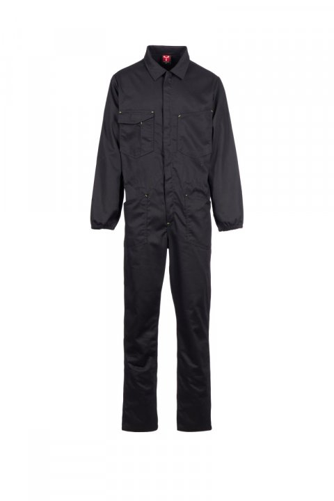 Kombinezon zapinany na zakryty zamek błyskawiczny z podwójnym suwakiem, umieszczony w centralnej części, gumka na mankietach i z tyłu w pasie. Dwie naszyte kieszenie, dwie kieszenie na klatce piersiowej, z czego jedna na smartfon, uchwyt na identyfikator, z miejscem na długopis i patką zapinaną na rzep, kieszeń na taśmę mierniczą. Podwójny szew w kroku i po wewnętrznej stronie nogawki.