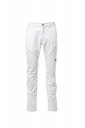 Spodnie całoroczne unisex, elastyczne, z elastycznymi wstawkami bocznymi i szlufkami na pasek. Zapinane na zamek błyskawiczny z guzikiem plastikowym, dwie klasyczne kieszenie przednie, kieszeń boczna z zapięciem LOCK SYSTEM, kieszonka na taśmę mierniczą, dwie kieszenie z tyłu, jedna otwarta, jedna z klapką i zapięciem na rzep, trzyrzędowe przeszycia w kroku i po wewnętrznej stronie nogawek. Kontrastowe wstawki i przeszycia, z odblaskowymi paskami na tylnej kieszeni, potrójne szwy. Zatrzask dla koloru białego.