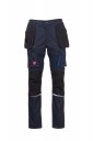 Spodnie unisex, rozciągliwe, całoroczne, z bocznymi gumkami i szlufkami w talii, zapinane na zamek błyskawiczny i spersonalizowany guzik. Dwie zwisające kieszenie, z Nylonu Oxford 500D, umieszczone w pasku: jedna z uchwytem na długopis i taśmą na narzędzia; jedna zapinana na zamek błyskawiczny oraz kieszenie do odkładania przyrządów. Z przodu posiadają dwie wyprofilowane kieszenie, po prawej stronie kieszonkę na monety, po lewej stronie bezpieczną kieszeń zapinaną na zamek błyskawiczny. Na lewej nogawce z przodu posiadają kieszeń z klinem, klapką zapinaną na rzep i uchwytem na identyfikator. Z przodu na prawej nogawce znajdują się: kieszonka na telefon z odblaskową lamówką oraz kieszeń z klinem. Obie nogawki posiadają kieszenie na nakolanniki, z Nylonu Oxford 500D, z kontrastowej tkaniny, z dolnym otworem oraz odblaskowe wstawki. Z tyłu znajdują się: kieszeń z klapką zapinana na rzep (lewa nogawka); otwarta kieszeń z dwoma odblaskowymi paskami i kieszeń na taśmę mierniczą (prawa nogawka); odblaskowe wstawki na wysokości kolan i dół z kontrastowego materiału na obu nogawkach. Szwy trzyigłowe w kroku, po wewnętrznej i zewnętrznej stronie nogawki. Kontrastowe wzmocnione szwy w wielu miejscach. Średnie (włoskie) rozmiary 48-50-52 mają regularną długość wewnętrzną nogawki wynoszącą 82 cm.