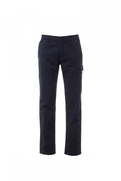 Spodnie letnie, z bawełnianego mini ripstop stretch, z szlufkami i gumą w talii. Zapinane na zamek błyskawiczny i guzik. Kieszenie przednie o klasycznym kroju, z kieszonką na monety i bocznym uchwytem na miarkę. Kieszeń boczna z klapą zamykającą Lock System. Dwie kieszenie tylne, z czego jedna z klapą na rzepy. Szwy potrójną igłą.