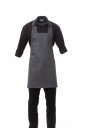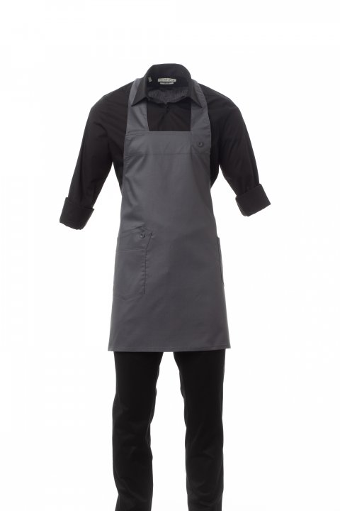 Avental de peito unissexo multifuncional ajustável com 2 botões no pescoço, em sarja de algodão e Lycra® T400®, com excelentes propriedades elásticas e respiráveis. Possui um bolso para objetos e um bolso maior, adornado com um botão. Medidas: 80x70 cm.