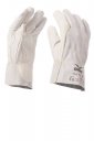 Luvas com palma, polegar e indicador em pele flor de vaca, dorso em croute de vaca na palma da mão, proteção do polegar e proteção adicional na base do polegar, proteção de pulso em pele flor de vaca, punho de 7 cm em croute e punho elástico. Costura com fio de para-aramida. Características: macias, robustas, resistentes. Pontos fortes: conforto, destreza. Setores de utilização: adequadas para o manuseamento de objetos afiados, rugosos, abrasivos e quentes, para a limpeza de instalações, carpintaria e serralharia. Utilizações em presença de calor/fogo. Quantidade mínima para venda: 1 dúzia (12 pares).