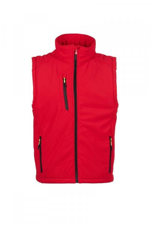 WP 8000 mm H₂O, WVT 5000 g/m² 24h. Vestă soft-shell în 3 straturi, cu căptușeală caldă (160g/m²), pentru bărbați, guler cu inserții din fleece, închidere cu fermoar SBS cu cursor metalic „semi-auto lock” și dispozitiv de tragere personalizat. Guler interior cu detalii laterale din fleece. Bandă reflectorizantă pe partea din spate la nivelul taliei. Două buzunare laterale cu fermoar, un buzunar cu fermoar la piept. Dungi fluorescente. Un buzunar interior închis cu scai. Partea inferioară reglabilă cu opritor personalizat.
