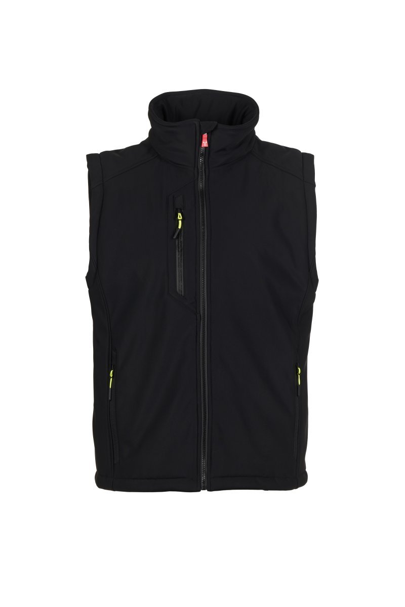 WP 8000 mm H₂O, WVT 5000 g/m² 24h. Vestă soft-shell în 3 straturi, cu căptușeală caldă (160g/m²), pentru bărbați, guler cu inserții din fleece, închidere cu fermoar SBS cu cursor metalic „semi-auto lock” și dispozitiv de tragere personalizat. Guler interior cu detalii laterale din fleece. Bandă reflectorizantă pe partea din spate la nivelul taliei. Două buzunare laterale cu fermoar, un buzunar cu fermoar la piept. Dungi fluorescente. Un buzunar interior închis cu scai. Partea inferioară reglabilă cu opritor personalizat.