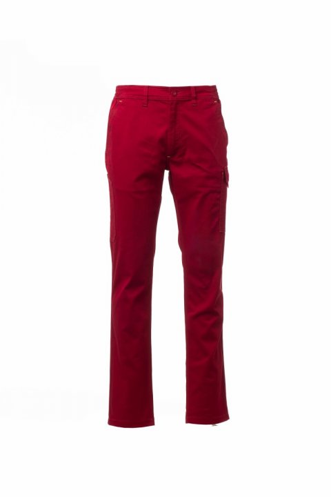 Pantaloni cu trecători și elastic în talie, închidere cu fermoar și nasture. Două buzunare anterioare cu tăietură clasică, buzunăraș pentru monede, port pentru ruletă lateral, buzunar lateral cu pată de închidere Lock System, două buzunare posterioare dintre care unul cu pată cu arici. Cusături cu ac triplu.