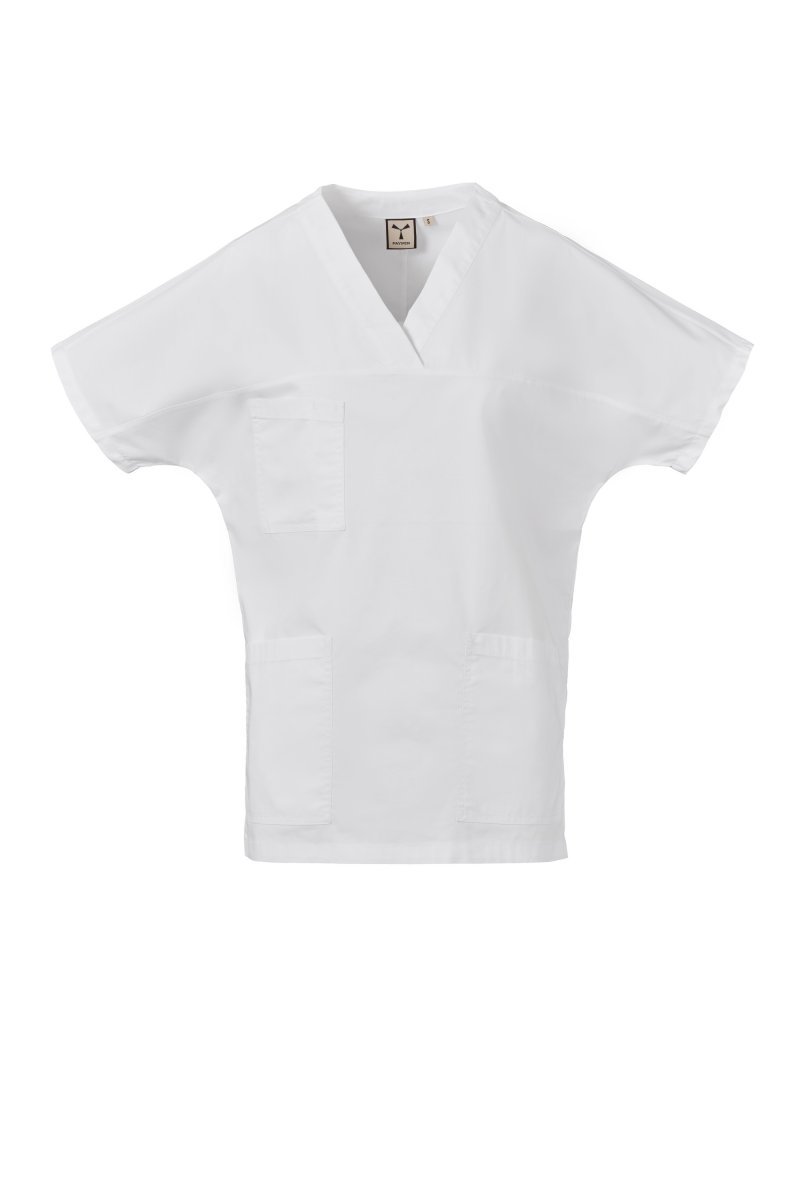 Tunică cu mânecă scurtă pentru bărbați, cu guler în V, confecționat din poplin de bumbac, poliester și Lycra® T400®, cu proprietăți excelente de elasticitate și respirabilitate. Tăietură orizontală în față. Buzunar la piept cu compartiment pentru pix. Două buzunare mari aplicate în partea de jos. Parte posterioară cu despicătură centrală. Fante laterale pentru a facilita mișcarea.