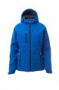 WP 8000 mm H₂O, WVT 5000 g/m² 24. Dámsky 3-vrstvový softshell s teplou výplňou (160g/m2), zapínanie na zips s kovovým bežcom „semi-auto lock“ a ťahačom s logom. Prišitá kapucňa so zaťahovacou šnúrkou. Pružné a nastaviteľné manžety so zapínaním na suchý zips. Dve bočné vrecká a jedno náprsné so zatváraním na zips. Fluorescenčné bežce. Dve vnútorné vrecká, jedno tvarované so zipsom a druhé na tablet so zapínaním na suchý zips. Spodok sa dá upraviť zarážkami s logom.