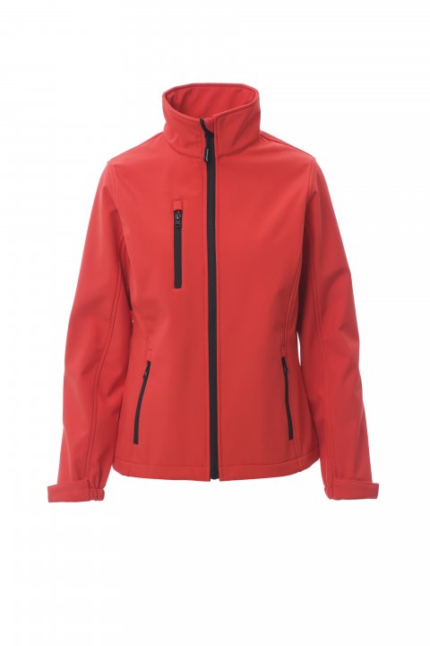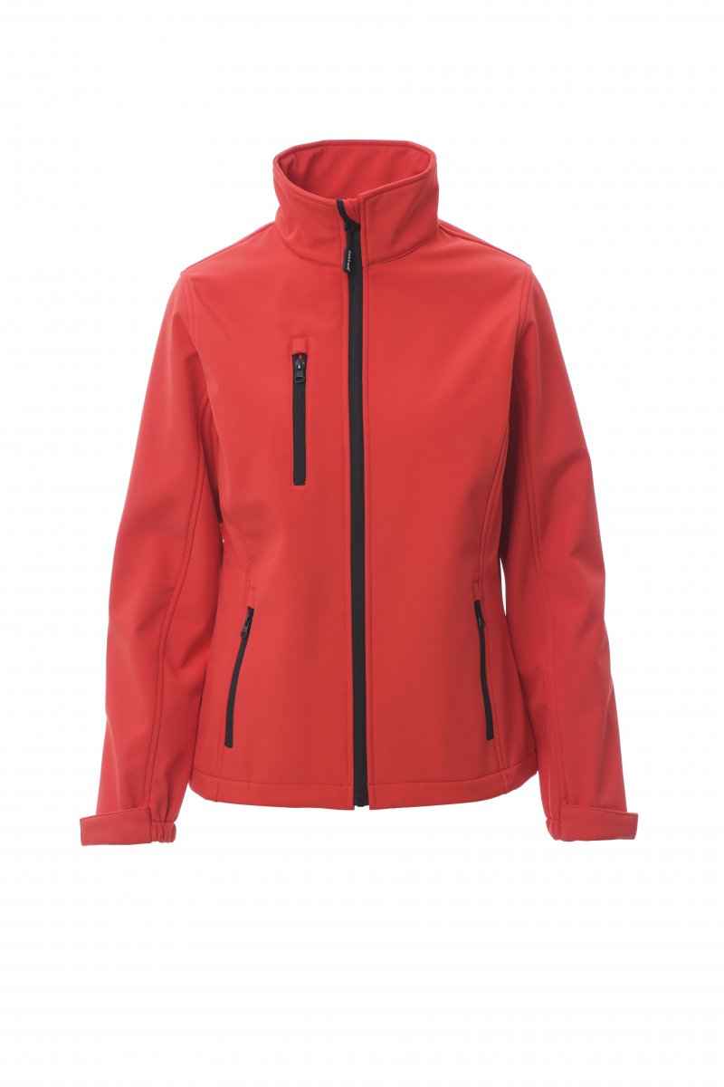 WP 8000 mm H₂O, WVT 5000 g/m² 24h. Dámska 3-vrstvová soft-shell bunda. Zapínanie na zips SBS s légou. Pružné manžety, nastaviteľné suchým zipsom. Dve vonkajšie vrecká so zipsom.