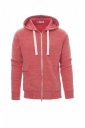 Pánska mikina s kapucňou s plným kovovým zipsom s dvojitým uškom, raglánové rukávy, kapucňa s bielou zaťahovacou šnúrkou s kontrastným šitím a kovovými krúžkami, klokanie vrecká, malé vrecko na zips s otvorom na kábel mp3 prehrávača/smartfónu, strečové rebrované manžety a pás, zosilnené švy. Biely miešaný efekt (čierny pri farbe Bordeaux).
