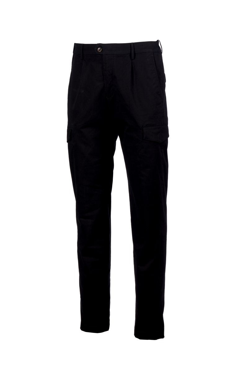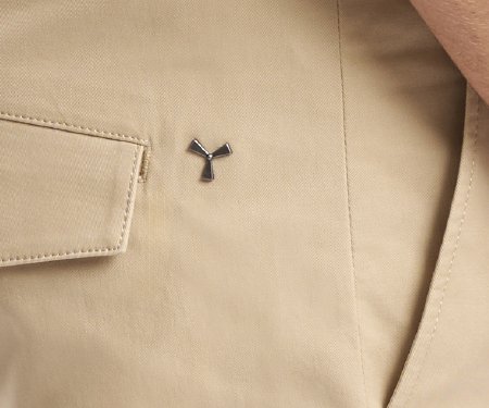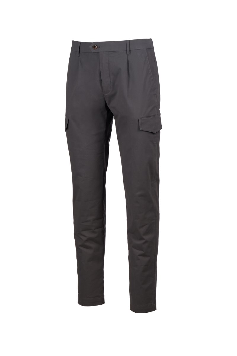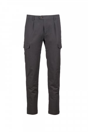 Nohavice chino z pružného gabardénu, contemporary fit, s elegantnými pútkami v páse, zapínanie na zips, posunuté zapínanie na gombík a vnútorný gombík. 2 malé záševky vpredu. 2 šikmé bočné vrecká, 2 bočné vrecká s chlopňou a skrytým patentným gombíkom, 2 zadné vrecká s chlopňou a patentným gombíkom. Nit v tvare vrtule na pravom boku.