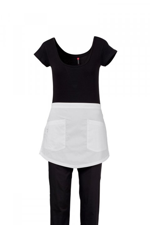 Krátka dámska zástera zo zmesovej tkaniny bavlneného popelínu, polyesteru a vlákna Lycra® T400®, s vynikajúcimi vlastnosťami, čo sa týka pružnosti a priedušnosti. Zaväzovanie v páse tkaninovým pásom. S dvoma veľkými našitými vreckami, pričom na jednom je vyšitá ikona vrtule Payper v rovnakej farbe. Tvarovaný spodný okraj na zvýraznenie strihu.
