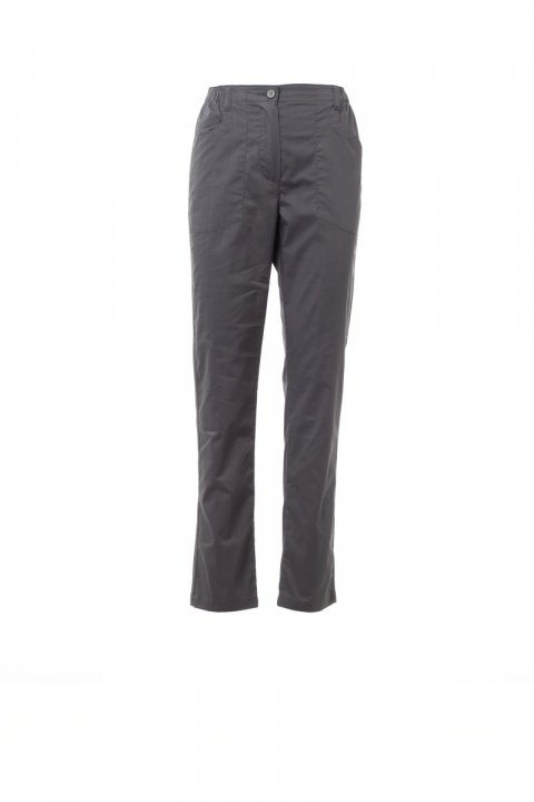 Dámske nohavice, viacfunkčné, vyrobené z bavlneného ripstopu a materiálu Lycra® T400®, s vynikajúcimi vlastnosťami pružnosti a priedušnosti, s praktickými bočnými vsuvkami zo sieťoviny po celej dĺžke na vonkajšej strane nohy. Zapínanie na zips a gombík, tunel v páse s gumičkou zachytáva pot. Vredu sú dve tvarované vrecká a vrecko na mince. Vzadu je tvarované našité vrecko. Výstužné vložky rovnakej farby.