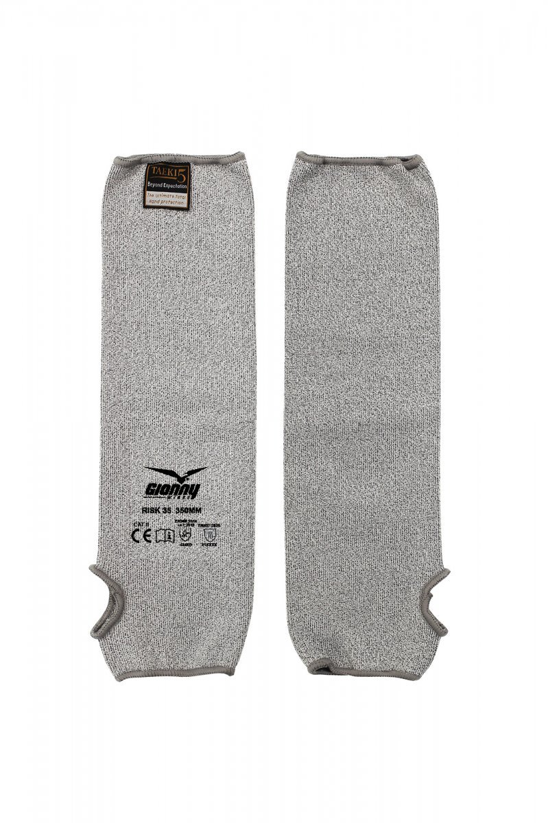 Ochranný rukáv z HSCY/HPPF/ELASTAN 13G, dĺžka 35 cm, s otvorom na palci. Vlastnosti: robustný, veľmi odolný. Silné stránky: odolnosť proti porezaniu a teplu pri kontakte (max 100 °C). Oblasti použitia: automobilový priemysel, všeobecná údržba, sklársky a keramický priemysel. Minimálne predávané množstvo: 5 kusov (5 pravých rukávov a 5 ľavých rukávov zabalených samostatne vo vreckách). Cena v cenníku: za pár (2 kusy: 1 pravý rukáv a 1 ľavý rukáv).