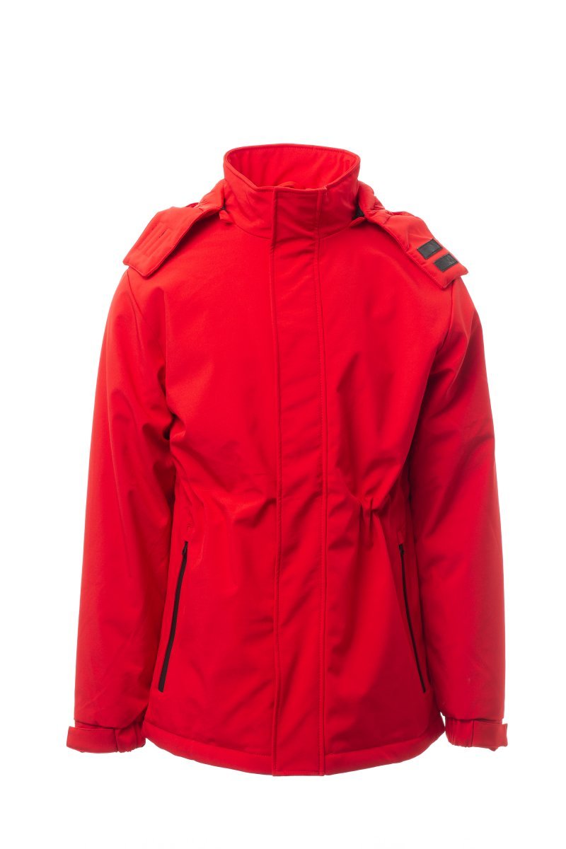 WP 8000 mm H₂O, WVT 5000 g/m² 24h. Podložena moška soft-shell jakna s 3 sloji in toplo oblazinjenostjo (160 g/m²), z zapenjanjem na ježka in zadrgo s kovinskim drsnikom s polavtomatskim zapiralnim mehanizmom ter prilagojenim jezičkom. Snemljiva kapuca, ki se spredaj zapenja z ježkom. Dva zunanja žepa s prevlečeno zadrgo, en notranji žep z obrobo in zapiranjem na ježka ter en notranji žep za tablični računalnik, prav tako zaprt z ježkom. Elastični patenti na zapestjih, nastavljivi z ježkom. Na zadnji strani ovratnika našitek po meri z odsevnim detajlom. Spodnji rob je nastavljiv s prilagojenimi zategovalniki.