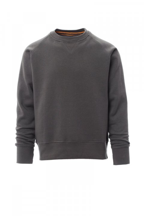 Moški pulover z okroglim izrezom, raglan rokavi, okrasno vezenje v V-obliki. Raztegljive rebraste manšete in spodnji rob, ojačani šivi.