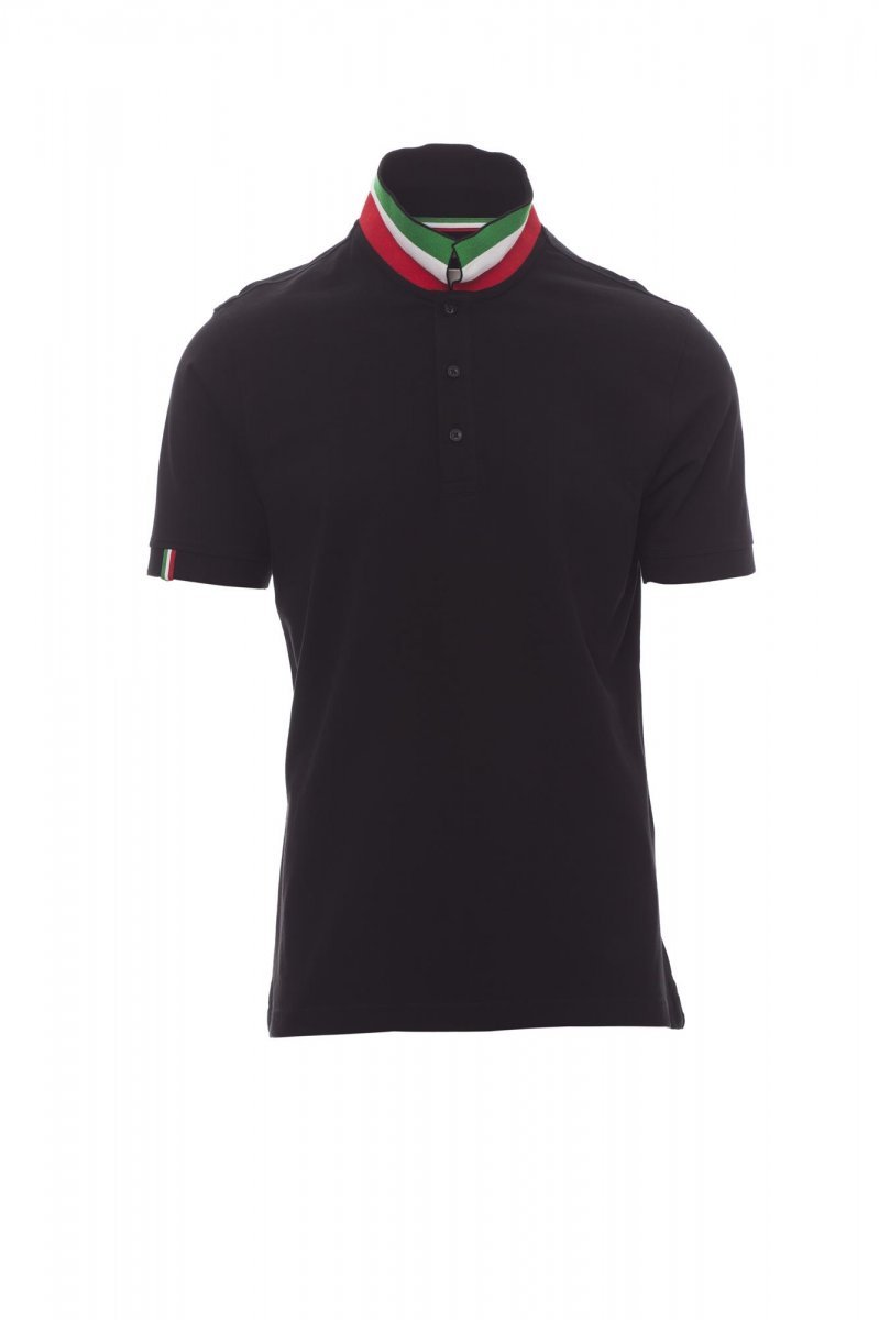 Moška polo majica s kratkimi rokavi, s 3 gumbi v ujemajoči se barvi z učinkom bisernega vzorca, ujemajoči se ovratnik z notranjo stranjo v kontrastni barvi (barve zastave). Rob desnega rokava z barvno obrobo (enake barve kot pri ovratniku), rebrast ovratnik in rob rokava, obroba stranskega razporka v barvah zastave, skriti šivi na ovratniku s trakom iz jerseyja (barve zastave), ojačitveni stranski trak, trak na notranji strani ovratnika.