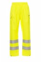 Hlače za dež z visoko vidljivostjo in trakovi 3M. Elastičen pas, dva stranska žepa, zaprta z zavihkom z izpostavljenimi gumbi. Toplotno zapečateni trakovi in šivi. V celoti so oblikovane iz fluorescenčne tkanine z dvema odsevnima trakovoma, ki obkrožata gamaše. Nastavljivi spodnji deli nog z gumbom za zaklepanje.