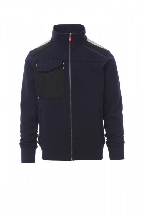 Zgornji del moške trenirke, plastična zadrga SBS po celotni dolžini s kovinskim drsnikom za »polavtomatsko zapenjanje«, dva žepa z zadrgo, večfunkcijski žep na prsih z nosilcem izkaznice in poklopcem za zapiranje s sistemom LOCK SYSTEM, odsevni trakovi na ramenih, rebrasta elastika v zapestju in pasu, dvojni šiv ob vratu, na rokavih in v pasu ter trak za ojačanje ovratnika. Tkanina je bila obdelana, da odbija vodo.