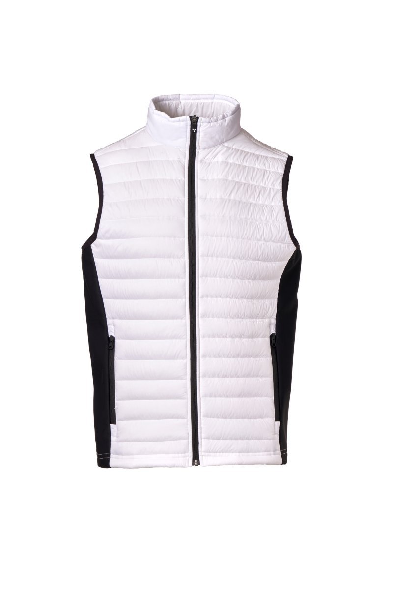 Jelek i mbushur (120g/m²) për burra, ijët me soft-shell, mbyllje me zinxhir plastik me kokë metalike "gjysmë-autolock" e tërheqëse koke të personalizuar. Dy xhepa anësorë me zinxhirë.